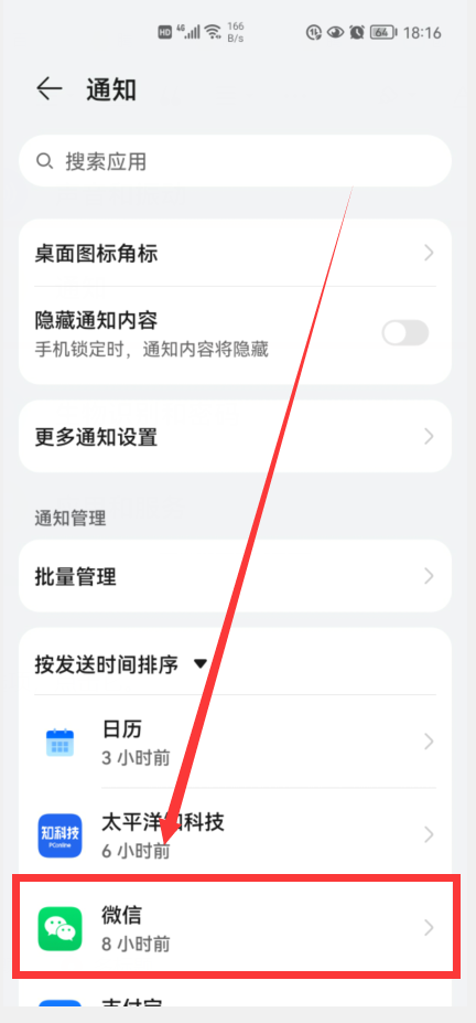 向下滑动,找到“通知”选项,点击它,就会进入手机的“通知”设置界面(如下图)。